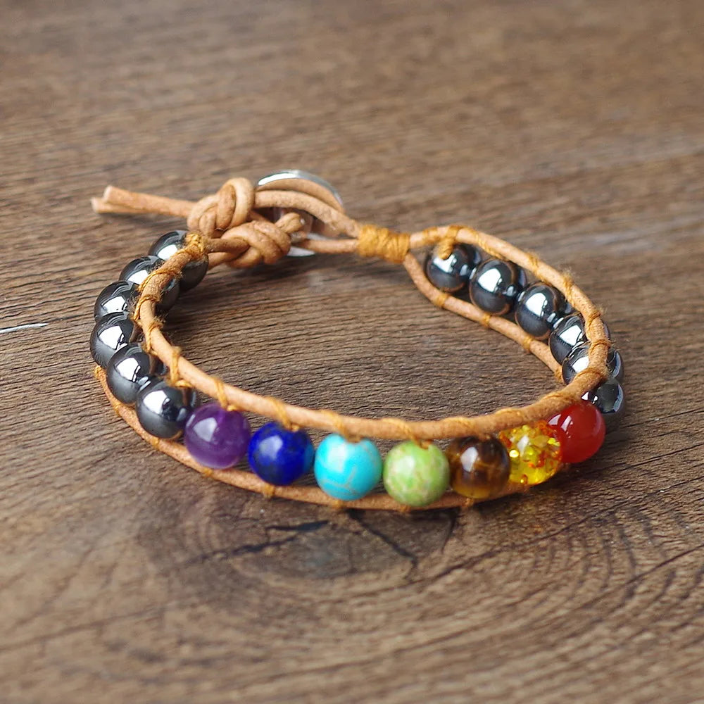 Bracelet 7 Chakras Hématite en CuirBracelet 7 Chakras Hématite en Cuir
